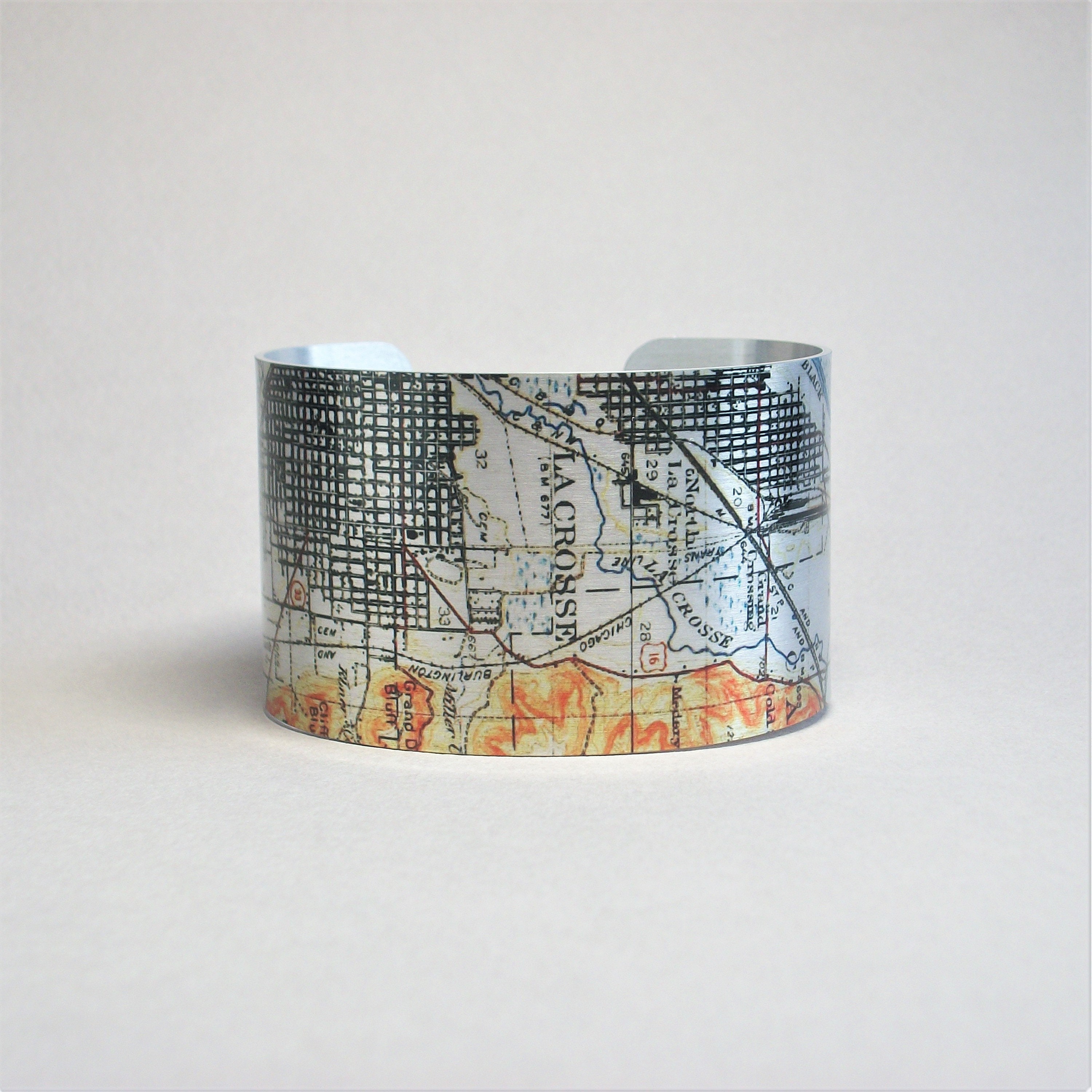 La Crosse Wisconsin Cuff Bracelet Unique Hometown City Map Etsy